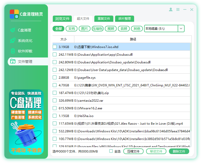 帮助用户迅速定位那些占用大量空间的文件。用户可以根据文件大小阈值,轻松找到并处理这些大文件。